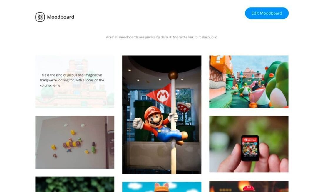 Milanote é o criador de moodboards online mais poderoso e o meu preferido dessa lista. Com modelos predefinidos, listas de tarefas e suporte para uma ampla variedade de arquivos multimídia, além de poderosas ferramentas de colaboração. É surpreendente que seja gratuito. Talvez seja mais indicado para usuários avançados.