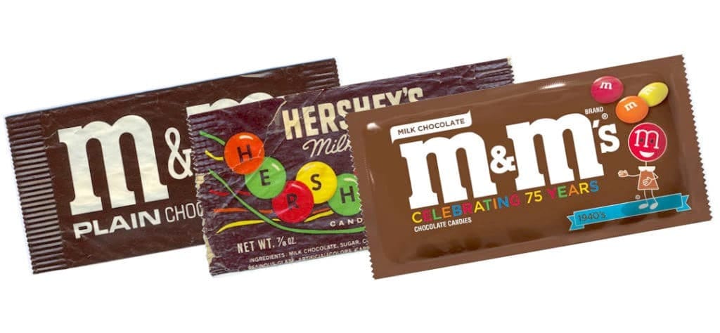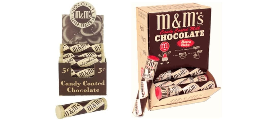 O que era inicialmente um chocolate para os soldados, passou a ser comercializado ao público em geral apenas no final dos anos 1940. Em 1948, a embalagem se transformou para o característico saquinho marrom que conhecemos até hoje. No entanto, somente nos anos 1950, que o “M” que conhecemos foi estampado no confeito – inicialmente em preto e apenas em 1954 tornou-se branco.