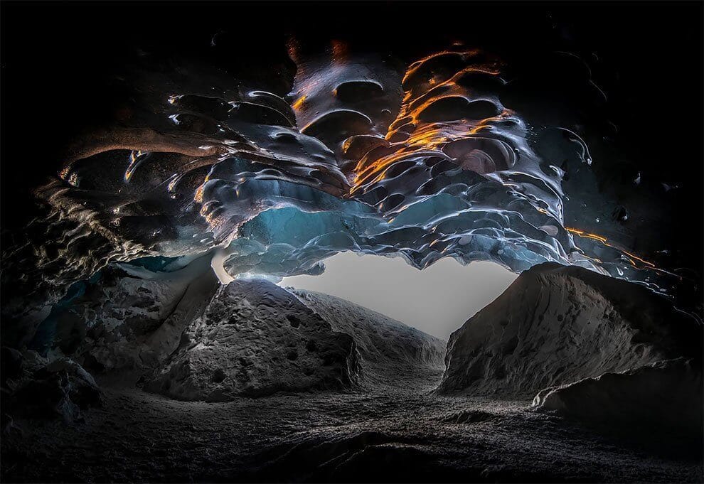 O fotógrafo Matěj Kříž gosta de visitar e fotografar lugares pouco explorados como as profundezas das cavernas de gelo da Islândia. O cenário – de tirar o fôlego – parece que está feito em vidro, com suas diferentes sombras e formas orgânicas, pode passar facilmente como uma pintura a óleo abstrata.