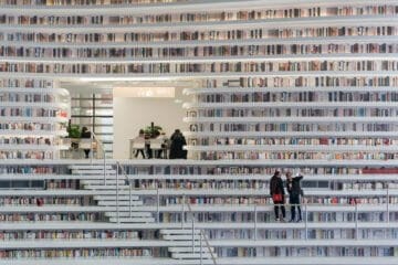 Visitar livrarias e bibliotecas é algo que, sem dúvida, pode tirar o fôlego (no bom sentido). Já me senti perdida entre um piso e outro na Livraria Cultura do Conjunto Nacional em São Paulo (SP), que considero, de longe, uma das melhores livrarias que já conheci (sim, deve haver outras). Fiquei encantada ao ver de perto a beleza da Biblioteca de España, em Medellín, na Colômbia… mas até então não tinha conhecimento de algo tão belo (em se tratando de biblioteca) como essa localizada em Binhai (Tianjin). A construção é tão imensa que se divide em cinco andares, cobrindo 34 mil metros quadrados, que a torna capaz de reunir até 1,2 milhão de livros. Fica até difícil se concentrar na leitura em meio a tanta beleza. Além dos espaços para comportar a gigantesca quantidade de livros, a “The Eye of Binhai” conta ainda com diversas salas de reunião estúdios de informática e escritórios. O projeto é da MVRDV, respeitada empresa de design holandesa. Sua construção contou ainda com a colaboração do Instituto de Planejamento e Design Urbano de Tianjin (TUPDI). Vale a pena conferir, nem que seja apenas as imagens.
