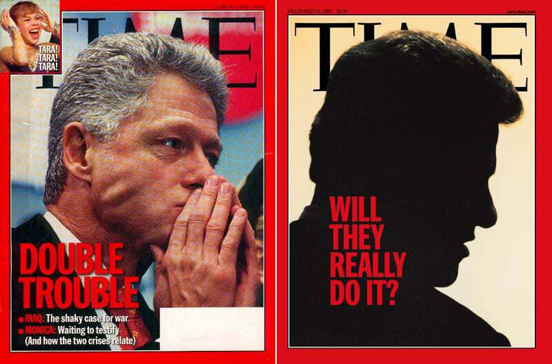 Percebendo a movimentação, a TIME rapidamente veio a público esclarecer que o chifrinho no Trump não foi de propósito. Explicaram inclusive que isso acontece o tempo todo em suas capas por causa da letra “M”, que fica alí meio centralizada e acaba coincidindo com os retratos das capas. Mandaram exemplos. Como a própria rival Hillary Clinton:
