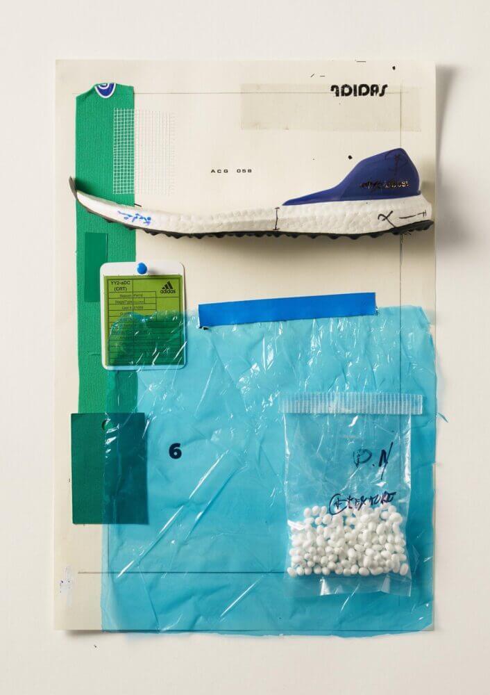 Com uma direção de arte bastante diferente, a agência Studio Lore da Holanda fez uma série de anúncios e cartazes com colagens artísticas, utilizando o material do processo de desenvolvimento do tênis, com pedaços do produdo (solas, borrachas, etc) misturados com rabiscos, matérias-primas e papéis.