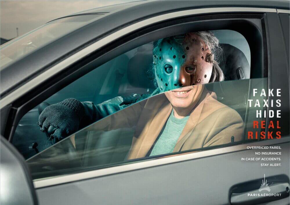 Campanha dos aeroportos franceses para alertar sobre táxis não credenciados e etc… (por aqui não é muito diferente, não).