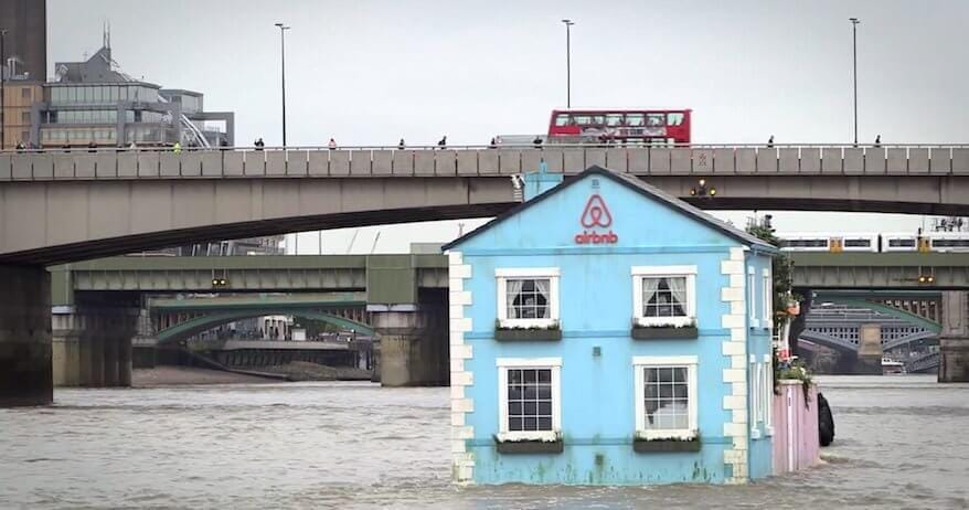Para chamar a atenção para as suas novas regras de hospedagem na Inglaterra (agora as pessoas podem alugar suas próprias casas por até 90 dias do ano; coisa que antes era ilegal) o AirBnB colocou uma casa para circular no rio Tâmisa, em Londres. E, para gerar mais envolvimento, criou junto com tudo isso uma promoção: as pessoas podem concorrer para se hospedar na casa no próximo fim de semana, quando a casa atracará em Putney.