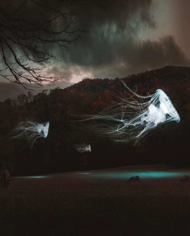 Şahin compartilha seu trabalho no Instagram e as imagens incluem elementos como folclore, natureza, animais e seres humanos num esquema meio sonho, com elementos sobrepostos e situações raras acontecendo. Confira alguns exemplos a seguir: