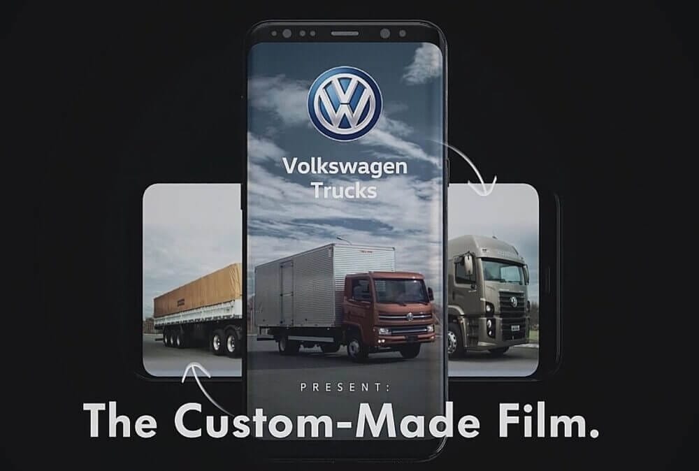 A AlmapBBDO resolveu aproveitar a diferença de formatos para fazer uma série de filmes que usam trilhas diferentes quando vistos na horizontal ou na vertical, aproveitando as deformações que essas telas causam. Assim, na vertical, a trilha conta a história de um cara super alto. E na horizontal, a de um cara super baixinho. Tudo isso para vender formatos customizados da linha de caminhões Volkswagen.