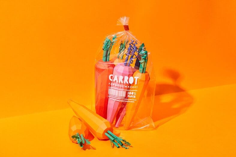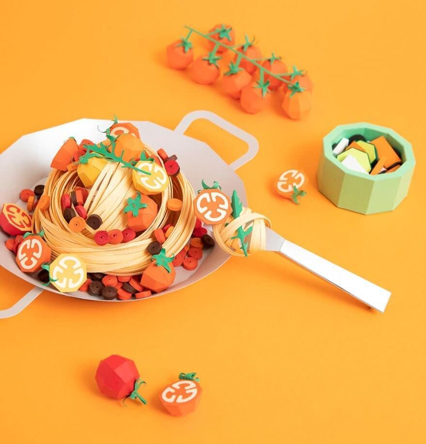 A coreana Lee Ji-hee se formou em design gráfico e se tornou uma artista de papel: constrói modelos de alimentos, utensílios domésticos e veículos coloridos para seus clientes comerciais usando apenas papel colorido. O resultado são obras de arte bem detalhadas, realistas e cheias de cores vivas.