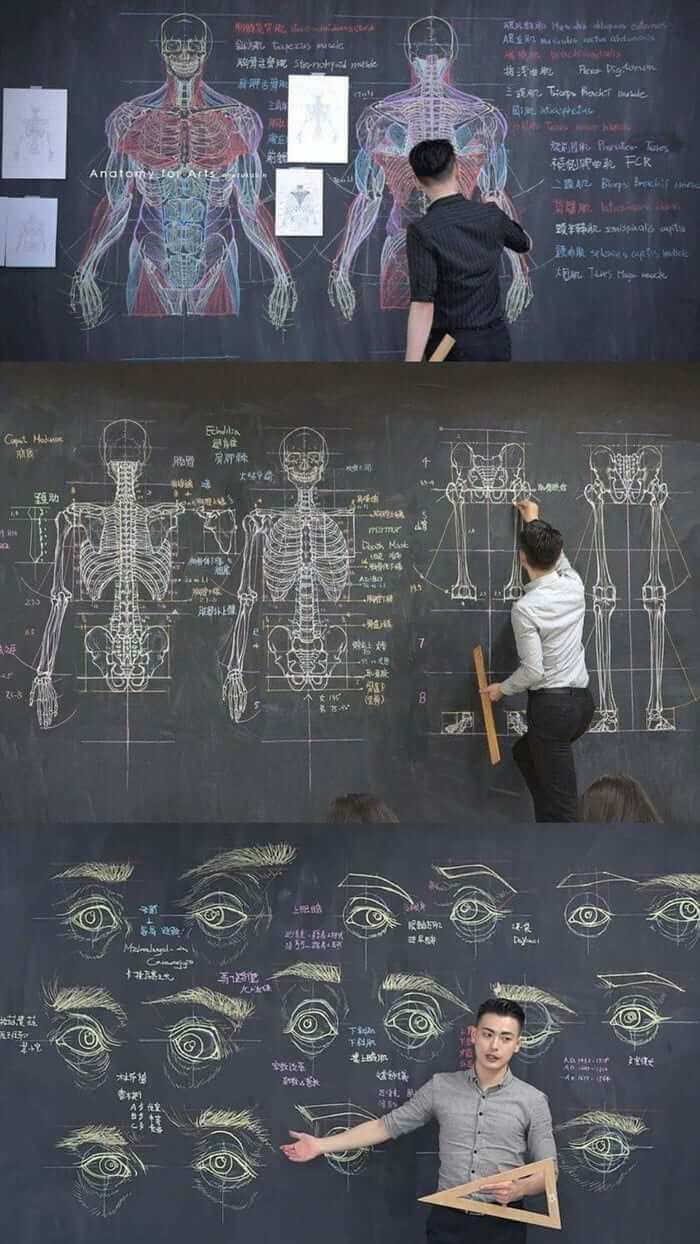 Enquanto a maioria dos professores mal conseguem desenhar uma linha reta ou ter uma caligrafia legível, esse cara cria verdadeiras obras-primas na lousa. E faz os alunos copiarem para aprender.