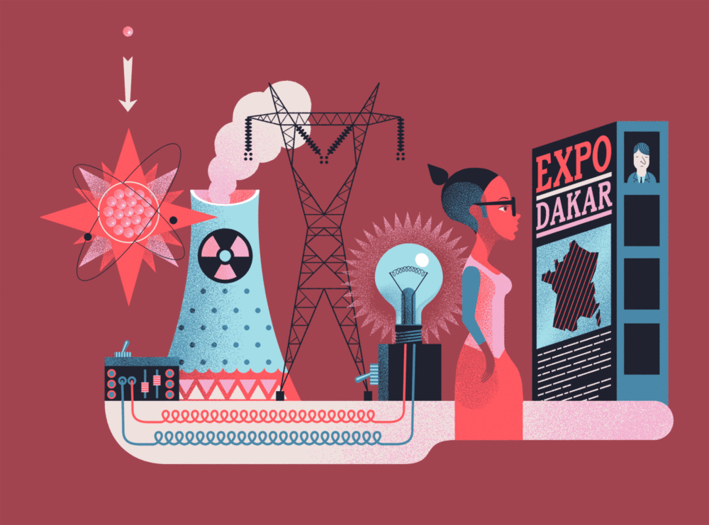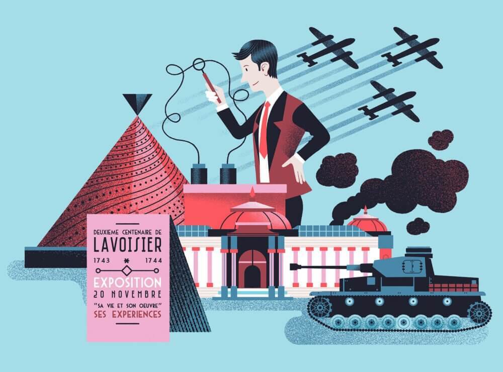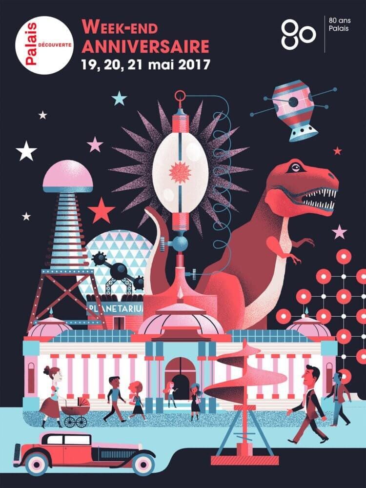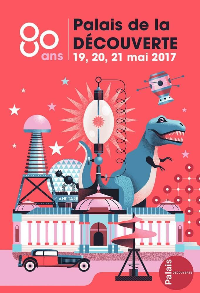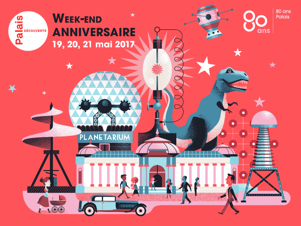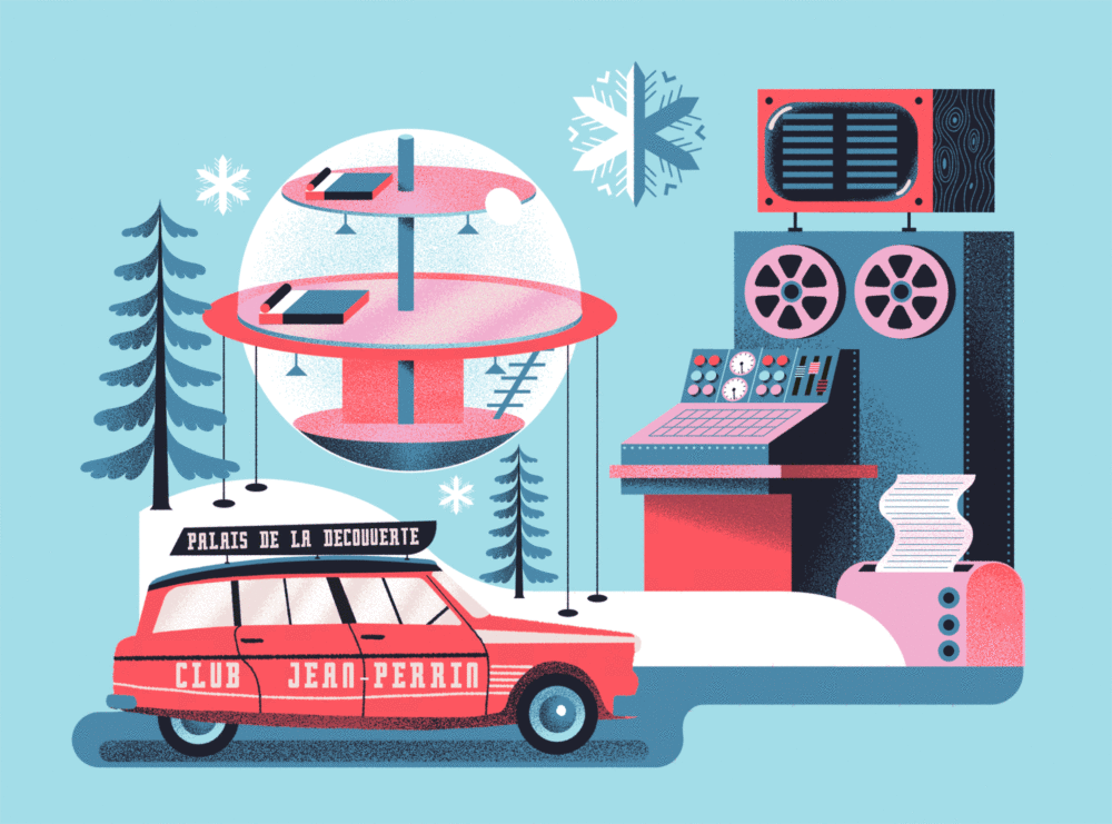Ilustrações e gifs comemorativos dos oitenta anos do Museu Científico “Palais de la découverte”, de Paris, feitas por Gwen Keraval