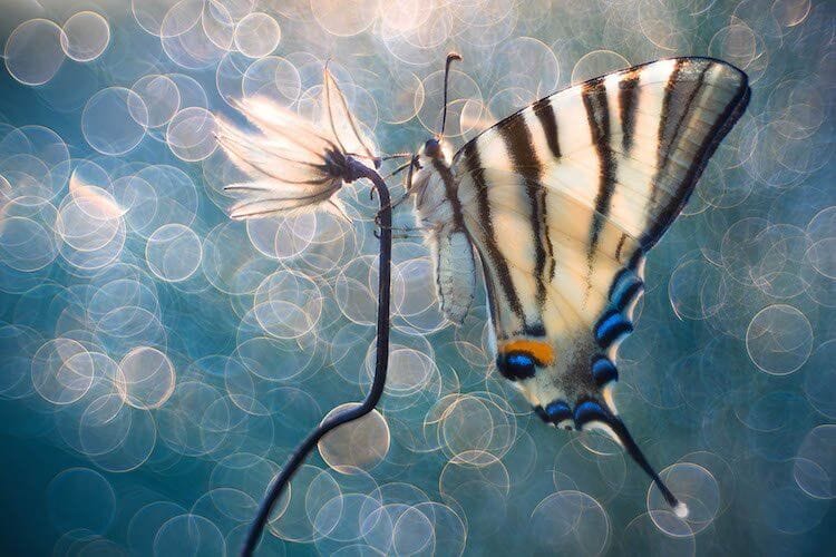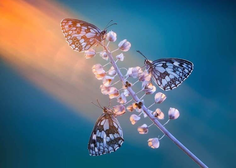 Quem levou o primeiro lugar foi o fotógrafo croata Petar Sabol por sua imagem chamada “Mayflies”, onde detalha dois beija-flores em cima de um caule de papoula, enquanto a luz do sol ilumina suas asas. Sabol diz: “A luz maravilhosa e enriquecedora de um novo dia cobriu este par de efêmeras”.