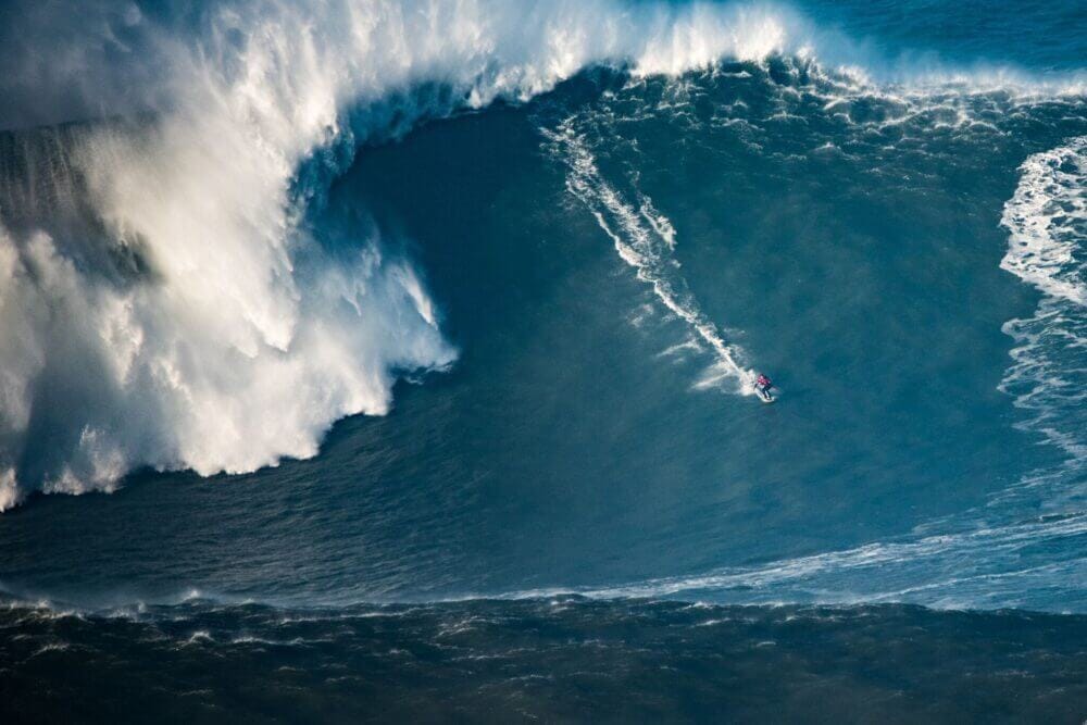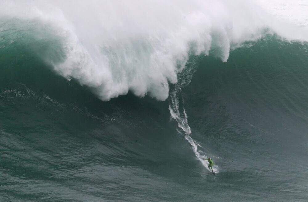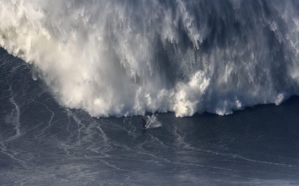 A Praia do Norte fica em Nazaré, Portugal. E é lá que estão essas gigantescas parede de água, reponsáveis pelos registros das maiores ondas já surfadas por seres humanos, segundo o Guinness, o livro dos recordes. É um King Kong líquido, uma Catarata do Iguaçu mordendo o calcanhar, uma piscina olímpica entornada na sua cabeça.