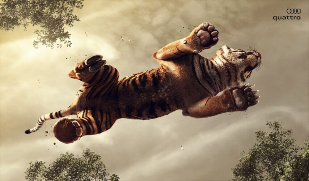– “Hmmm… é um carro com tração permanente nas 4 rodas. E se gente usasse uns animais, que também tem 4 patas?”– “Boa. Mas já foi feito”-“Ah, mas e se a gente fizer a foto assim, de baixo pra cima, pra enfatizar. Fica até mais mais dramático, moderno”-“É legal. Mas já foi feito”-“Já sei. Então a gente faz uma pata de cada animal”-“Sensacional!!!! Gênio!”