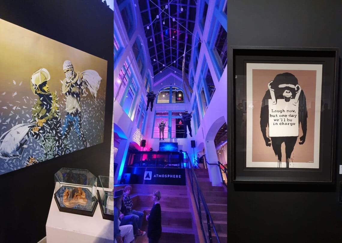 Mais do que reproduções singelas das gravuras ou graffitis famosos, como da menina com o balão vermelho, o espaço traz instalações, esculturas, intervenções diversas e até uma mostra em realidade virtual para expor algumas de suas ideias mais interessantes. Gastei algum tempo por lá, capturando algumas imagens muito mais como fã do que como profissional. Mas espero que elas ajudem a cativar sua criatividade e senso crítico, como sempre fazem comigo.