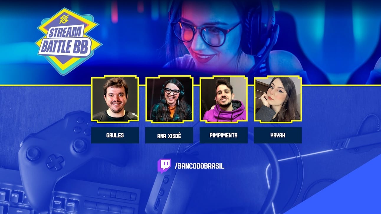 O Banco do Brasil (BB), abre, nesta quarta-feira, 30, as inscrições para o “Stream Battle BB”. O concurso vai buscar, em todo território nacional, seis streamers, de qualquer game, que tenham potencial para completar o Squad BB, ou seja, integrar o time de criadores de conteúdo do Banco.