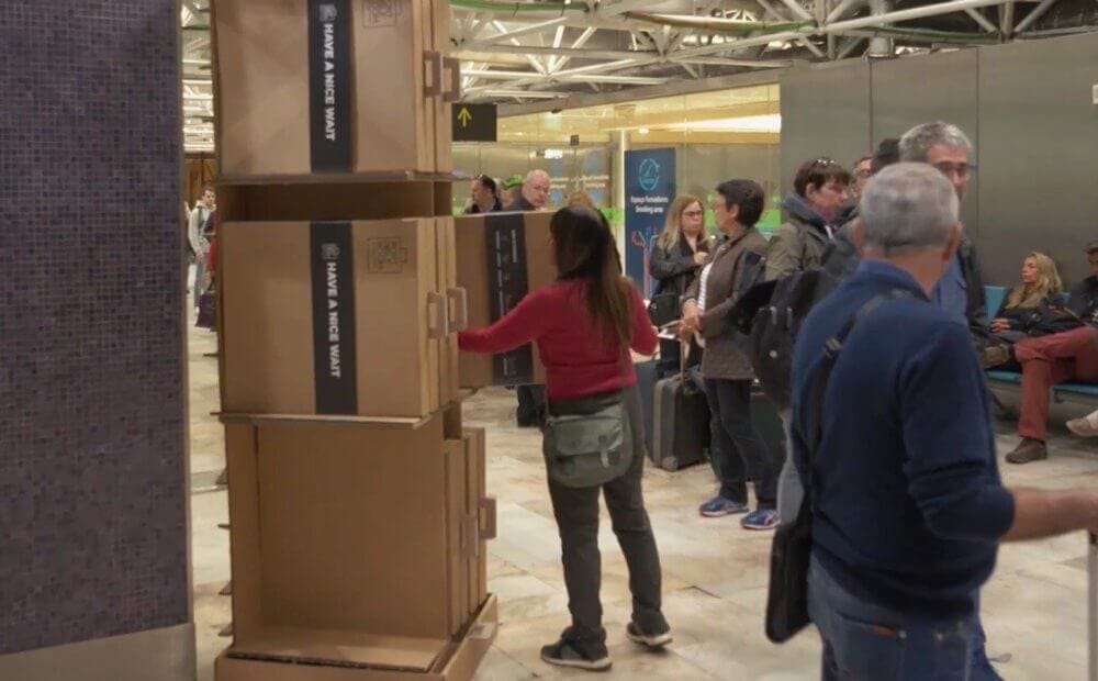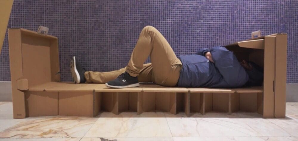 Por isso, a agência NOSSA e o Hotel Evolution criaram uma cama portátil, feita de papelão reciclado e pensada para aguentar qualquer pessoa, independentemente do seu peso e altura. Fechadas, ela viram simpáticas malinhas que podem ser retiradas em um totem. Claro, você vai continuar dormindo no saguão do aeroproto, mas com mais conforto. E um pouquinho mais de dignidade.