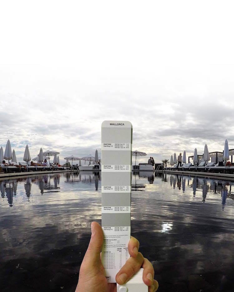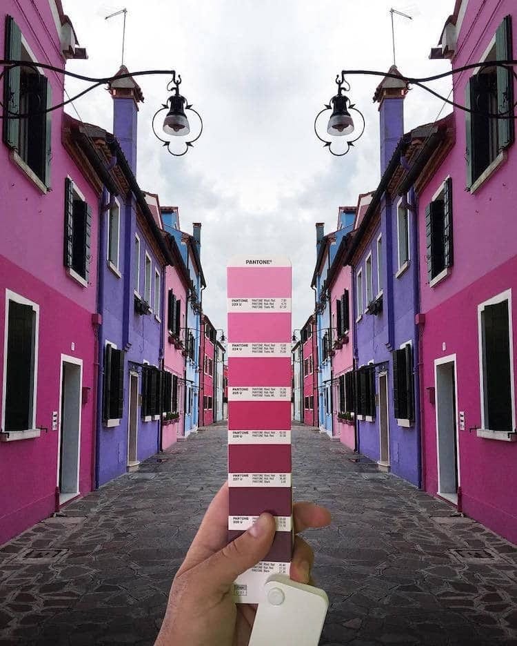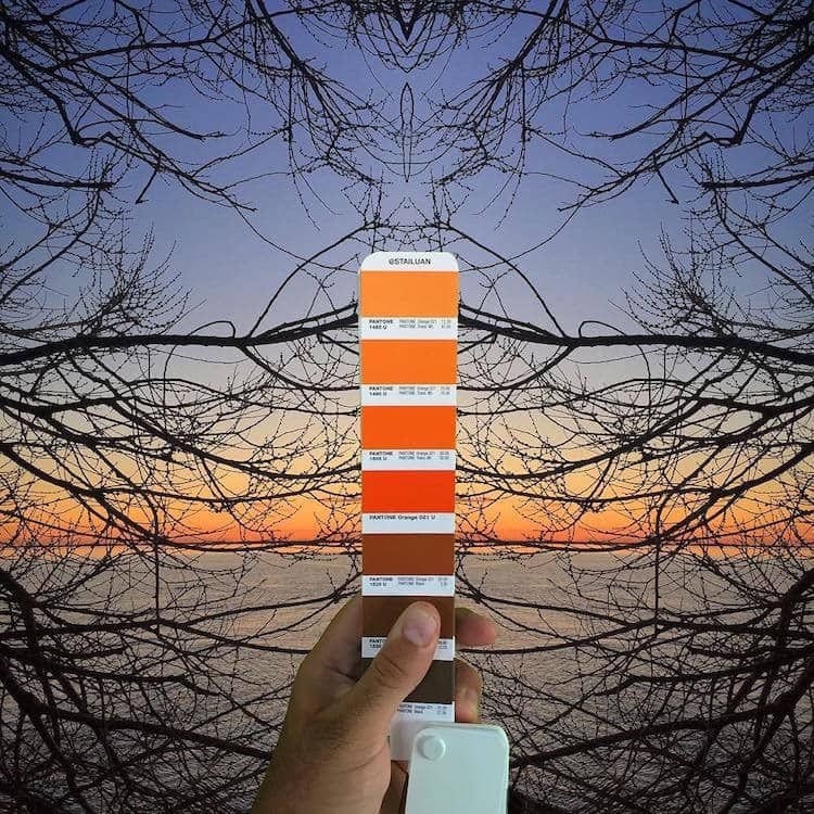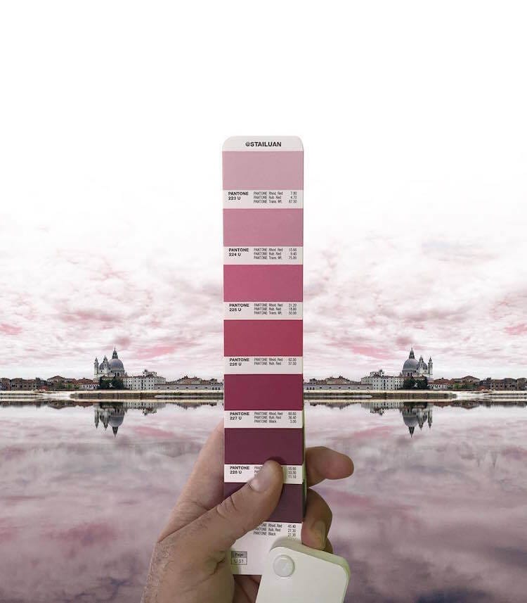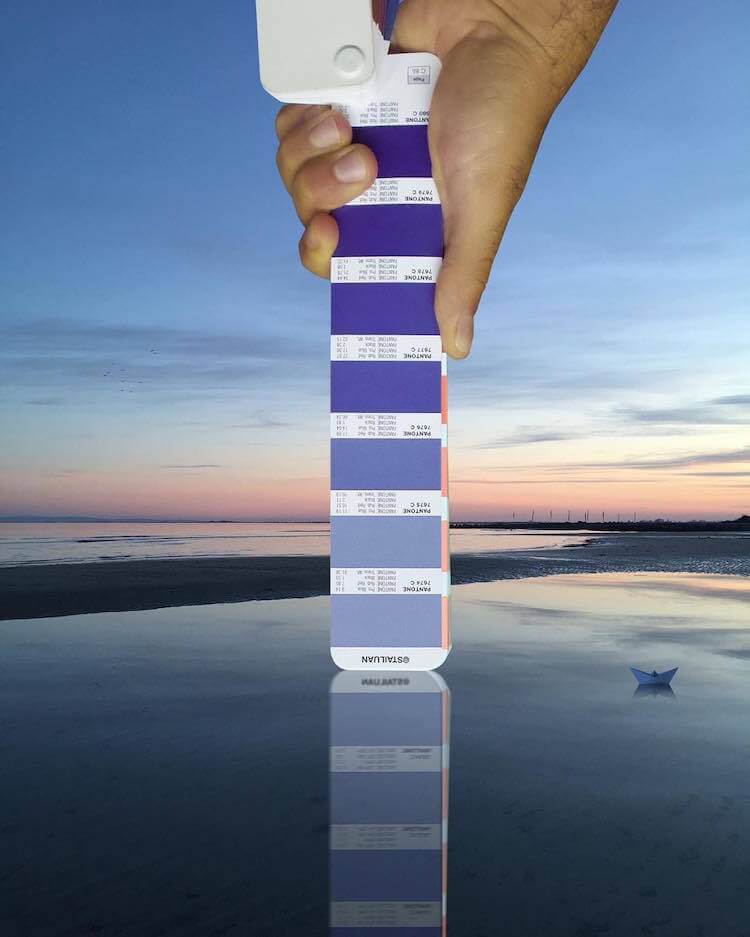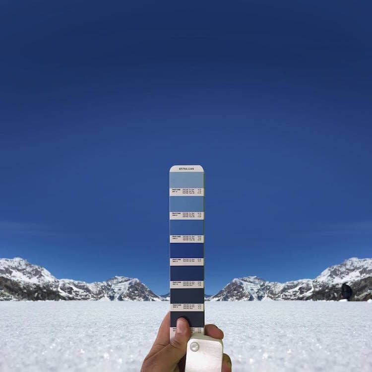 O designer gráfico italiano Andrea Antoni colocou a sua própria imaginação no uso da Pantone fotografando paisagens que ele combina perfeitamente com as cores da cartela. Tons de rosa e roxo mostram um vilarejo tomado com essas tonalidades; tons de alaranjado refletem em um pôr do sol; tons de azul descrevem um clima gelado e um céu vibrante; e muito mais.