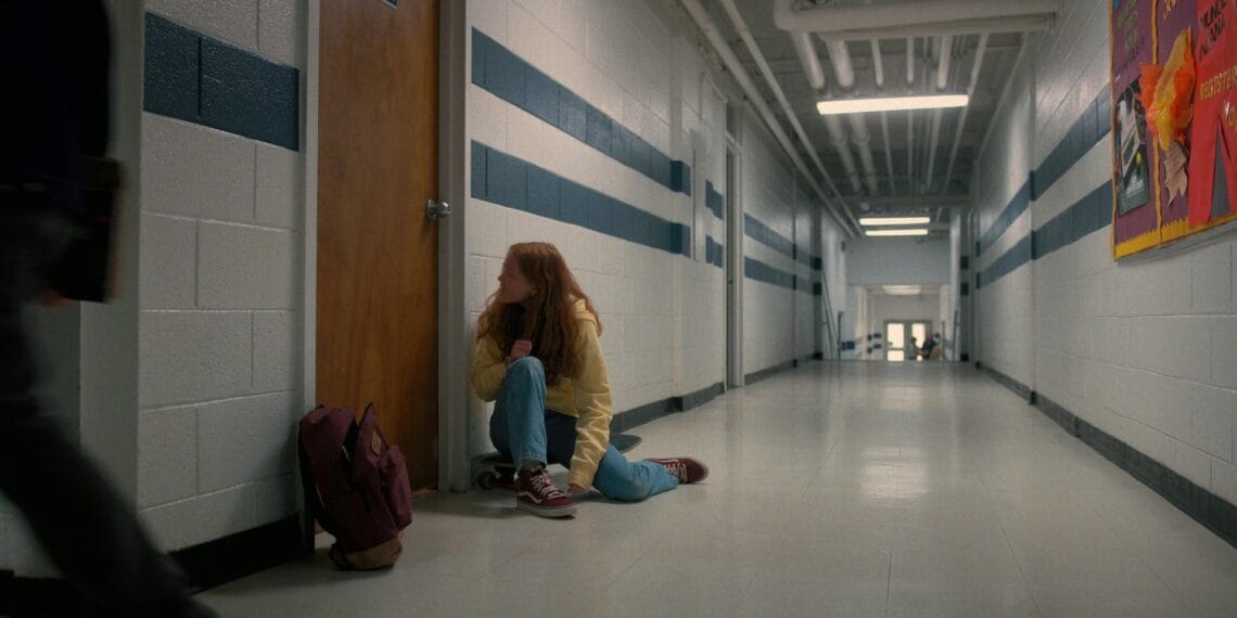 Max Mayfield usando um Vans Hi-SK8 “Wine”.