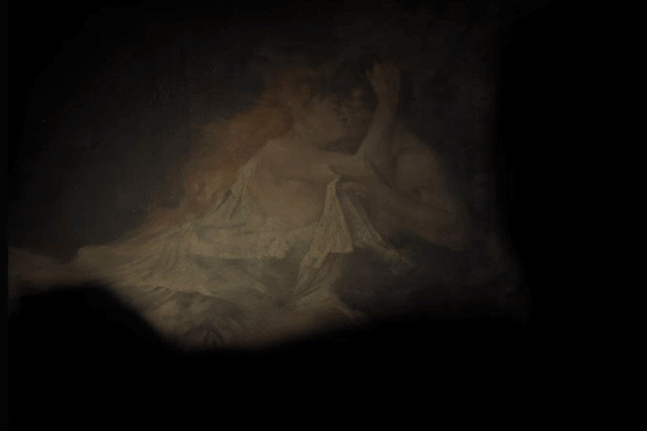 O que acontece é que a direção do clipe e os cortes de câmera fazem parecer que uma narrativa está se desenrolando: o close nos olhos como se ambos estivessem se entreolhando; planos fechados como se o soldado reagisse aos zeladores olhando por debaixo da saia da camponesa; as imagens do soldado no depósito, seguido de imagens da camponesa, como se fossem memórias dele.