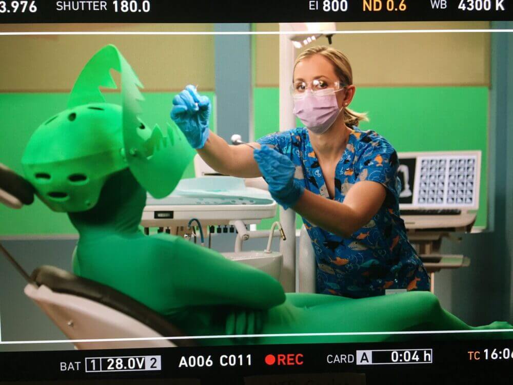 Só o patrocínio já seria legal, mas o Discovery Channel resolveu fazer um promo especialmente adaptado para o patrocinador, com um tubarão na cadeira do dentista.