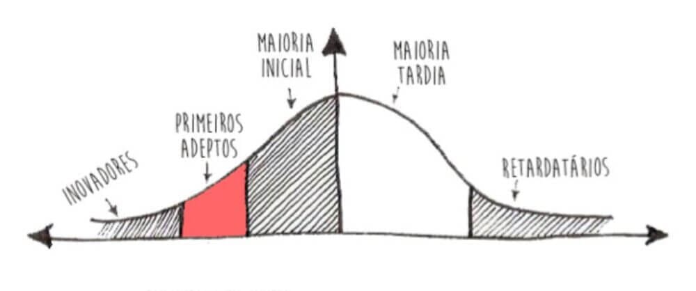 Já na Inovação há diversas dessas bases, e por isso podemos medi-la. Por exemplo, podemos comparar com outros produtos e empresas no mercado. Outra maneira de medi-la é através da Curva da Difusão da Inovação, de Everett Rogers.