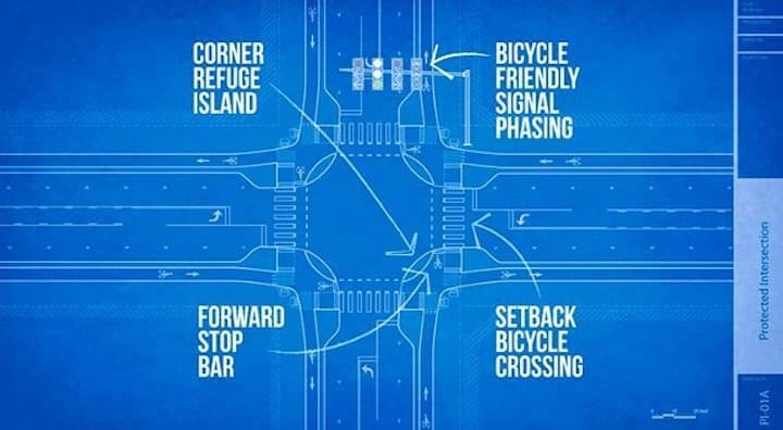 A George Mason University participou de um concurso de urbanismo e apresentou uma solução interessante para o problema, o Protected Intersection, resumido neste video: