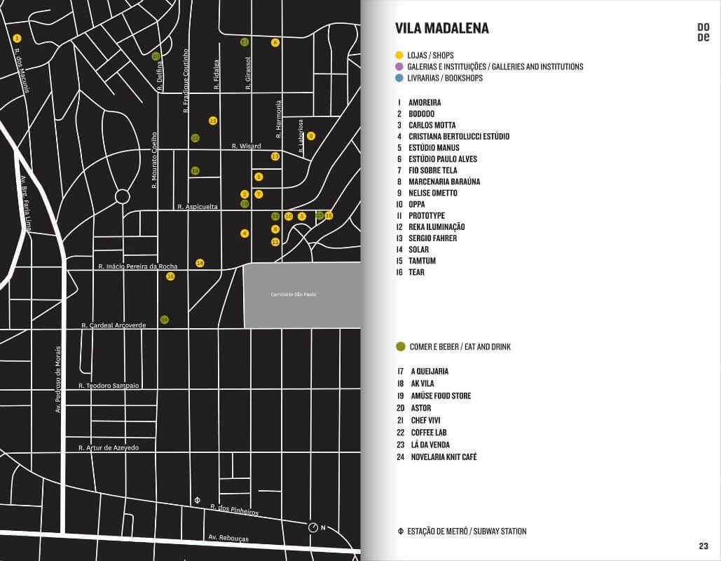Na indústria criativa, estamos sempre em busca de referências bacanas. E um dos pontos altos da Design Weekend deste ano é o lançamento do DODE, o Guia do Design de São Paulo. Inspirado no London Design Guide, o guia idealizado e organizado por Maurício Pinto e Silva traz alguns roteiros para que os apreciadores de design possam se aventurar a pé em lojas conceituais, edifícios, estúdios de design e galerias de arte. Conta também com boas dicas de locais para comer e beber. São seis os roteiros: Vila Madalena, Pinheiros, Gabriel e Jardim Europa, Jardins e Paulista, Centro e outras regiões. O guia tem como editor convidado Max Fraser, criador do guia londrino. Conta com projeto gráfico de Kiko Farkas, revisão conceitual da jornalista e pesquisadora de história do design Ethel Leon e textos de Ana Augusta Rocha. Uma boa dica para quem gosta do assunto. O guia já está à venda nas livrarias.