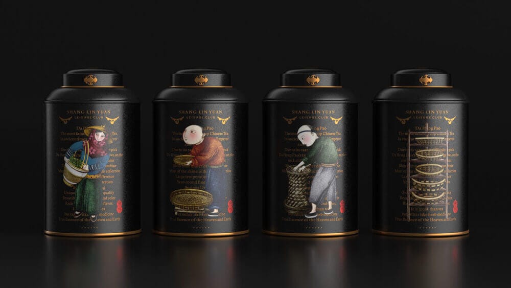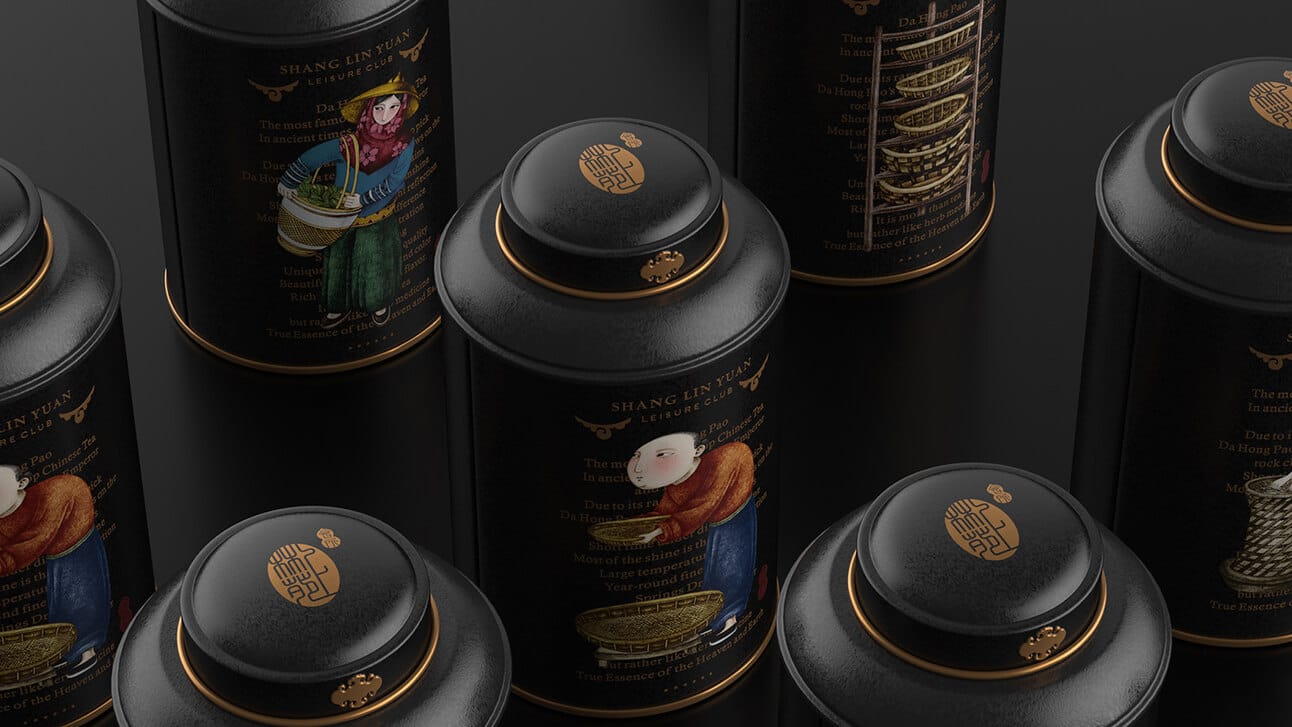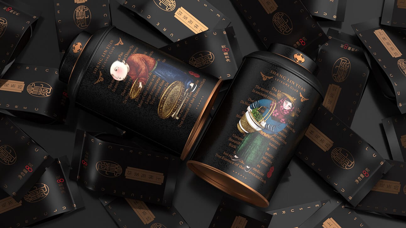 Belo trabalho de design de embalagem do estúdio chinês Pica Packaging Design, de Beijing. O preto predomina, favorecendo o contraste das cores nas ilustrações que remetem à cultura chinesa tradicional e com enfoque no cultivo e no processo de produção do chá.