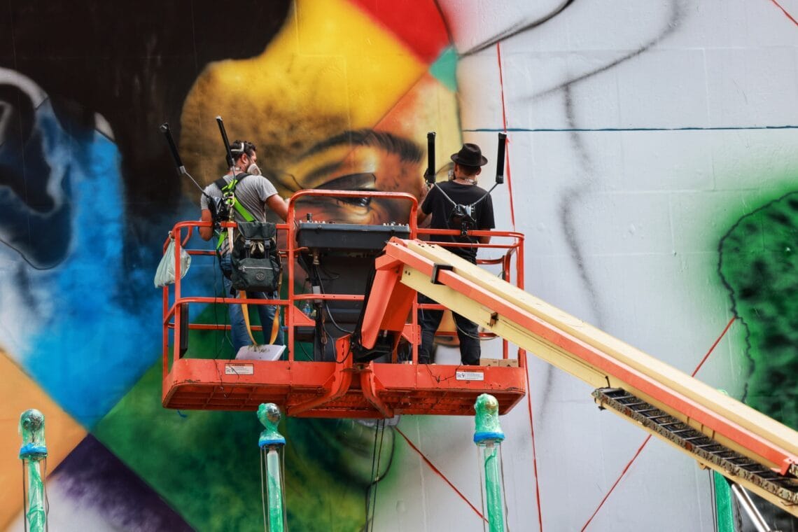 O conhecido muralista brasileiro Eduardo Kobra, 47 anos, trabalha dia e noite para finalizar até o dia 15 de setembro um novo mural de 24 metros de comprimento por 14 metros de altura (336 metros quadrados) – 45 ft por 78 ft (3606 sq ft), em uma das fachadas da Organização das Nações Unidas, em Nova York.