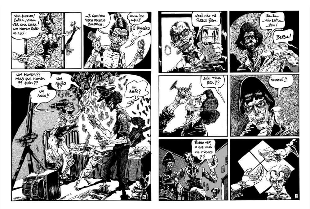 Vince: Qual a sensação de se reencontrar com seu próprio trabalho trinta anos depois? Mutarelli: É impressionante, mas ao mesmo tempo é assustador. É você perceber que trinta anos se passaram desde que eu publiquei meu primeiro álbum. Me reencontrar com esse trabalho é perceber que eu estou morrendo, mas ao mesmo tempo renascendo para novos públicos que não puderam conhecer meu trabalho lá atrás. O lançamento do “Capa Preta” com as pranchas originais nesse formato lindo me comoveu; eu tenho muito a agradecer ao Ferréz (que é como um irmão e um pai pra mim) e ao Tiago (da Comix Zone).