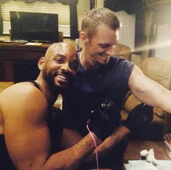 Sobre isso podemos falar mais pra frente. Como ainda falta um ano para o lançamento do filme, podemos nos contentar com as notícias sobre. E a novidade é que os atores estão realmente levando a sério esse filme e foram divulgadas fotos de set, onde Robbie, ainda vestida como Harley, está tatuando, de verdade, o resto da equipe com a inscrição: SKWAD.
