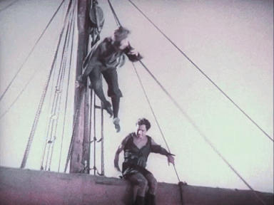 “O método para conseguir esta muito copiada cena foi descoberto pelo irmão de Douglas Fairbanks, Robert, um engenheiro. A câmera e a vela foram colocadas em um ângulo. A faca de Fairbanks foi conectada a um segredo escondido que fazia contrapeso. As hélices do avião foram usadas para fazer o vaguear das velas.”