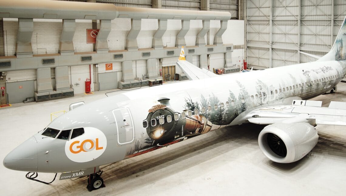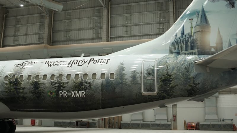 A GOL escolheu uma aeronave Boeing 737 Max, para receber a adesivação temática. Na arte, representações de elementos das duas áreas temáticas do The Wizarding World of Harry Potter dentro dos parques temáticos do Universal Orlando podem ser vistas, incluindo o Castelo de Hogwarts, o Hogwarts Express, a Floresta Proibida e o feroz dragão no topo do banco bruxo Gringotts no Diagon Alley. O interior do avião também conta com uma adesivação especial para encantar os fãs em todas as etapas de sua jornada.