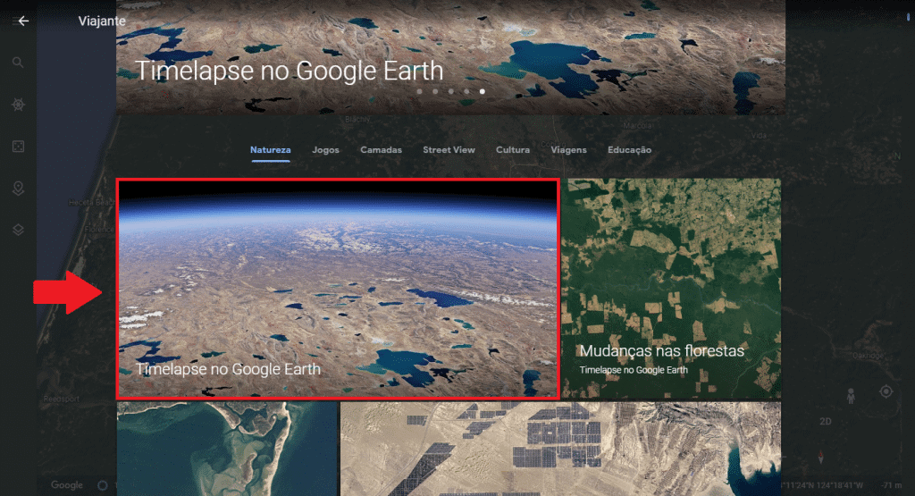 Procure pelo recurso Timelapse no Google Earth e clique sobre ele.