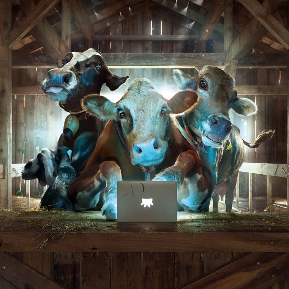 Excelente e divertida ilustração digital “Cow Milking Machine” criada por Silviu Avran, artista de 3D lá da Romênia que trabalha no competente Carioca Studio (que não é carioca). Um projeto para a De Laval, da Suíça.