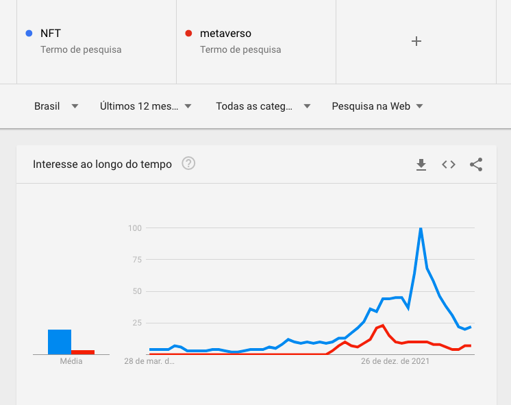 NFTs e metaverso explodiram em 2021, mas nos primeiros três meses de 2022, o interesse global de pesquisa nos dois conceitos caiu significativamente.