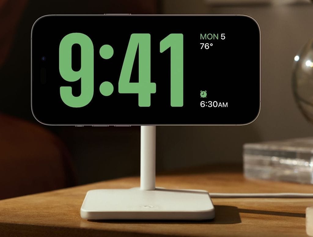 O novo sistema operacional do iPhone apresenta uma nova forma de usar o celular enquanto ele está carregando. O “Modo Standby” transforma a tela do aparelho em um display inteligente e personalizável para mostrar fotos, Live Activities ou exibir a hora em diferentes formatos. O usuário pode definir fonte, plano de fundo, tema e adicionar widgets à seção para alterná-los com gestos.