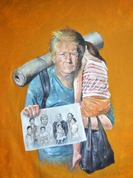 Abdalla Al Omari, refugiado na Bélgica, criou a série ‘Vulnerabilidade’, em que mostra Trump, Putin, Merkel e outros chefes de estado em situações que ele presenciou em sua situação como imigrante refugiado.