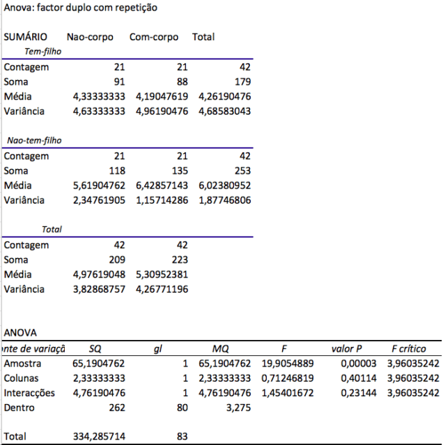 pexposição do corpo = 0,40114 | ppossuir filhos = 0,00003