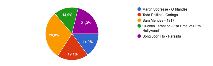 Para os que votaram na pesquisa da Viu Review, Coringa levaria o prêmio e a porcentagem de preferência surpreendia: Coringa com 44%, 1917 com 19% e Parasita com praticamente 15%, fechavam o pódio!