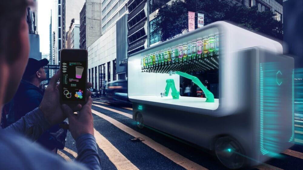 Desenhado pelo arquiteto italiano Carlo Ratti e criado [na fase de protótipo] em colaboração com a empresa de Ratti, o projeto é um café e bar robótico autônomo [ou seja, sem motorista] que faria coquetéis sob demanda para as pessoas onde quer que eles estejam, em uma tentativa de oferecer novas experiências de lazer em ambientes urbanos. Promissor, não?
