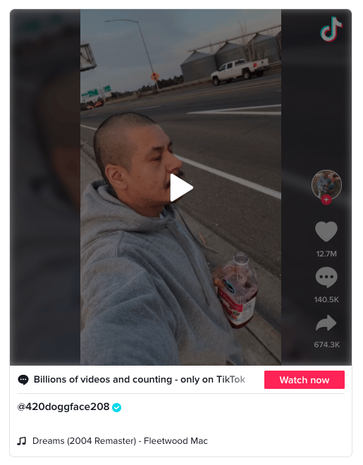 A vida real é mais divertida. No TikTok, a autenticidade é o maior ativo. Uma prova é o vídeo de Nathan Apodaca que bombou, passou de 50 milhões de visualizações, e consistia basicamente em um cara andando de skate, cantando uma música antiga e bebendo suco direto na garrafa. Suco, aliás, da Ocean Spray, que se mexeu rapidamente, fez sua conta no TikTok, mandou um caminhão de suco pro Nathan e o transformou em um embaixador. Vida real, diversão, espontaneidade e uma pitada de nostalgia. Isso interessa às pessoas. Especialmente em meio a uma pandemia.