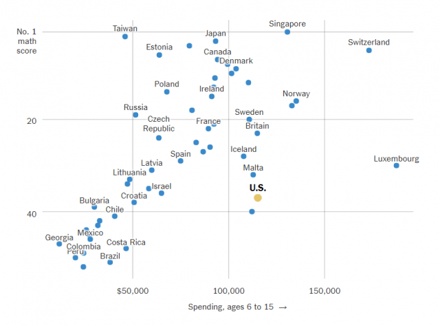 Não é quanto dinheiro um país investe em educação. Países como os Estados Unidos, Luxemburgo e Noruega estão no topo da lista entre os maiores investidores, mas nenhum deles é considerado superpotência educacional.