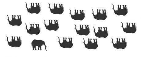 Nos dois casos era pra localizar a exceção. Por que então um foi mais difícil (um pouquinho) que o outro? Será que tem a ver com as formas? Será que o fato de saber que são elefantes influencia em alguma coisa? E o mais importante: por que estamos falando de elefantes mortos?