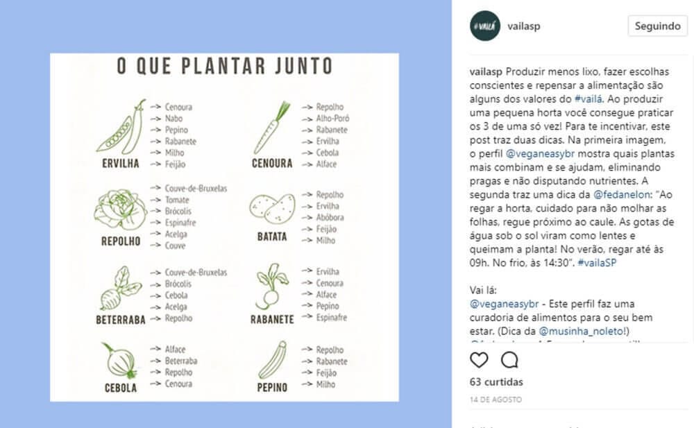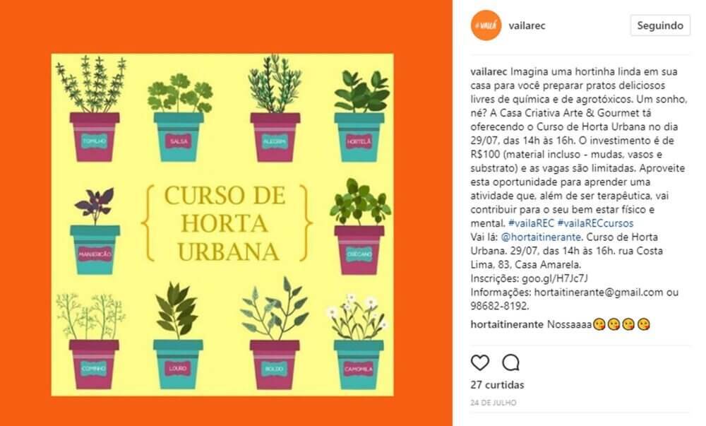 O projeto #vailá foi criado com o propósito de reunir, em páginas do Instagram, dicas sobre o que fazer nas cidades. A iniciativa funcionava como um guia colaborativo, formado por sugestões de pessoas que marcavam suas imagens com a hashtag da proposta. Essas indicações eram selecionadas pelos curadores de conteúdo e direcionadas para as páginas oficiais. O projeto foi criado pela Contente (um conjunto de ações e ideias que busca fazer da internet um espaço mais humano, acolhedor, autoral e consciente)?