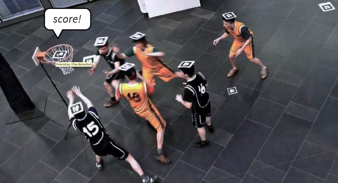 Esses caras com essas placas na cabeça e acelerômetros nas mãos estão jogando basquete.