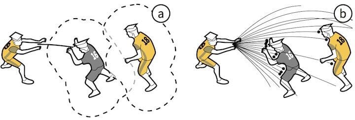 Enquanto isso, um computador faz um tracking de cada jogador e narra o jogo “ao vivo”, falando pelas caixas acústicas coisas como “cesta” ou “pra fora”, para os jogadores poderem saber o que está acontecendo.