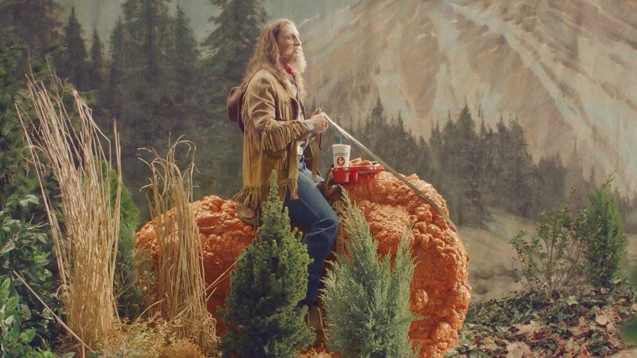 O comercial do cowboy que monta uma enorme asa de frango desossada através de uma excêntrica floresta habitada por animais diferenciados já está programado para o Super Bowl.