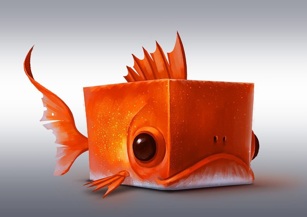 Projeto do ilustrador francês Romain Flamand com peixes em formato de cubo.