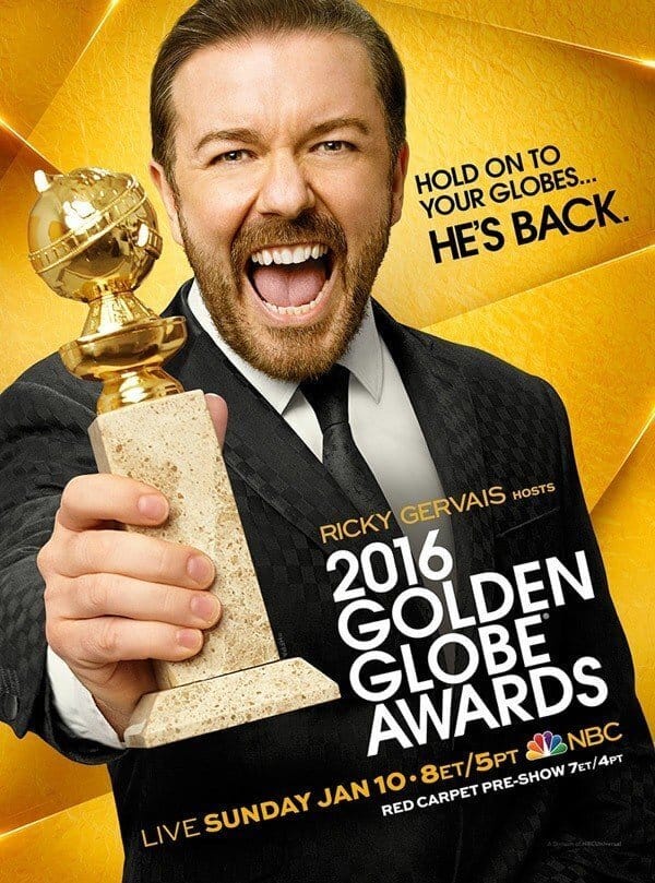O evento acontecerá no dia 10 de janeiro e contará com a apresentação do comediante Ricky Gervais, conhecido por estrelar a série The Office.
