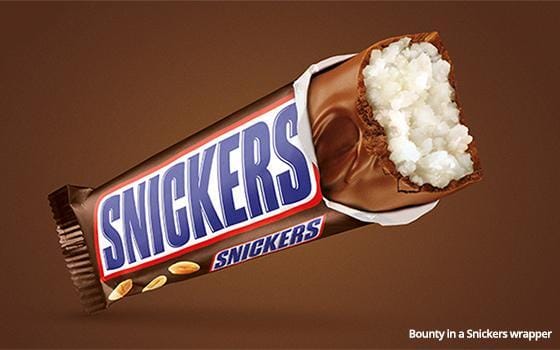 Desta vez a CLM BBDO da frança criou uma iniciativa que funciona assim: sem mais nem menos, alguns consumidores começaram a encontrar outro chocolate dentro da embalagem de Snickers (um Bounty Bar, marca que também é deles). Imediatamente esses casos isolados começaram a aparecer nas redes sociais com comentários do tipo “alguém lá na linha de produção vai ser demitido”, “que absurdo, colocaram o chocolate errado no meu Snickers”, etc. E viralizou, claro. Todo mundo achando muito bizarro e passando adiante.
